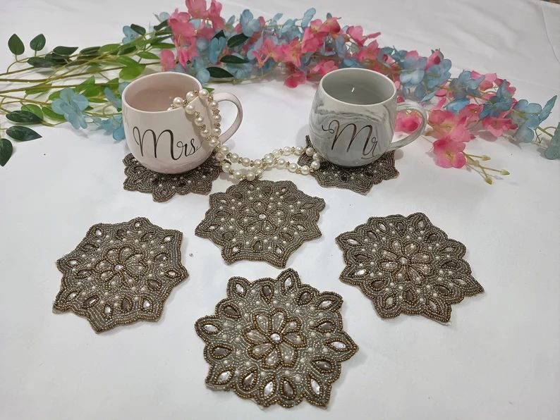These are handcrafted and well-made beaded embroidery coasters, which are purely handmade products and are done with a lot of hard work at needlepoint with best quality beads.