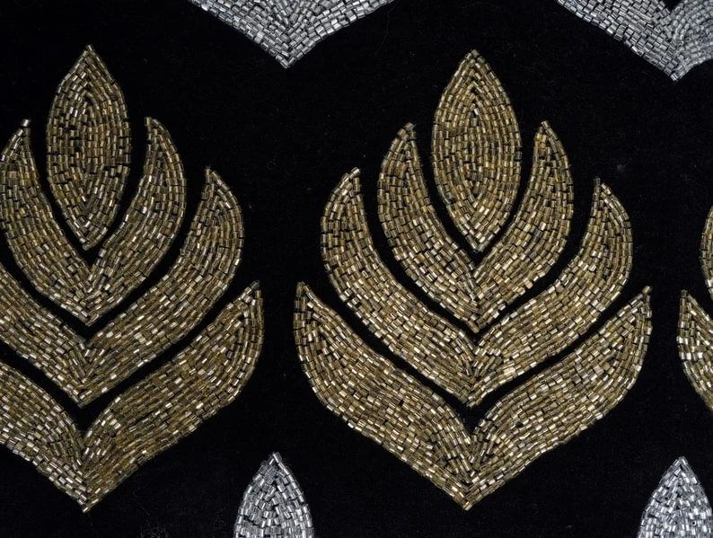 Handmade Golden-Silver sequins Leaves on Black Velvet Cloth Beaded Cushion Covers - Set of 2 and 4, Eid home decor, gifts for her