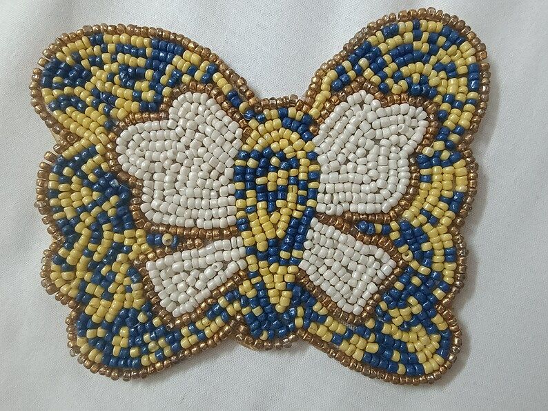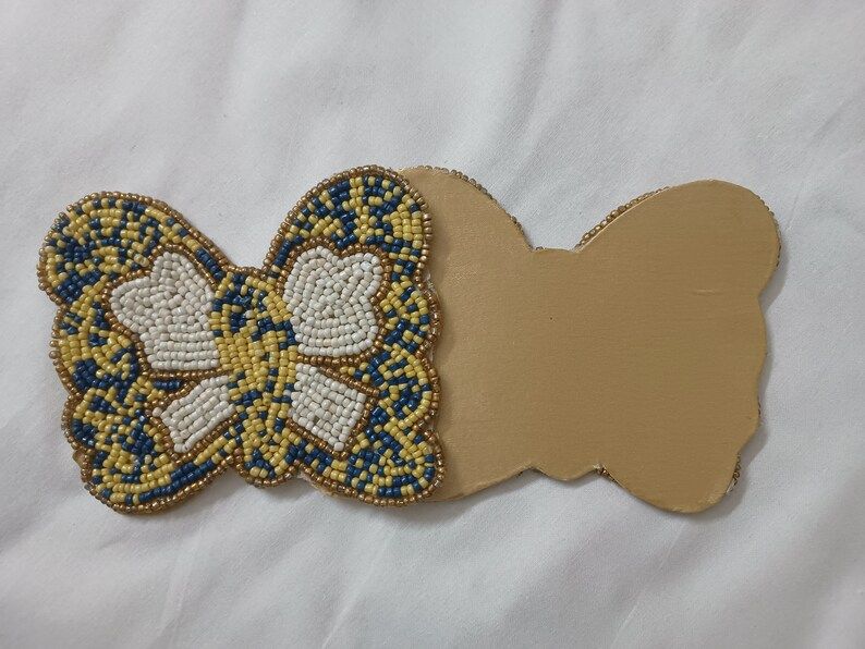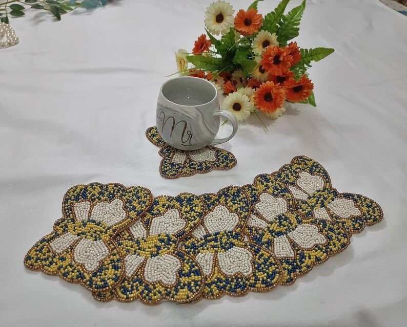 Butterfly pattern blue yellow handmade Beaded Coasters - Set of 4/6, Drink coasters, unique coffee table topper, Vintage Embroidery Art, handmade gifts, wedding table, Eid Ul Fitr home, Aesthetic Dining table decorative, desk mat, Gift for her, friendship day gift